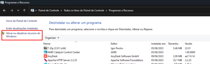 1. Acessar o painel de controle, programas e recurso e selecionar a opção ativar ou desativar recursos do windows: