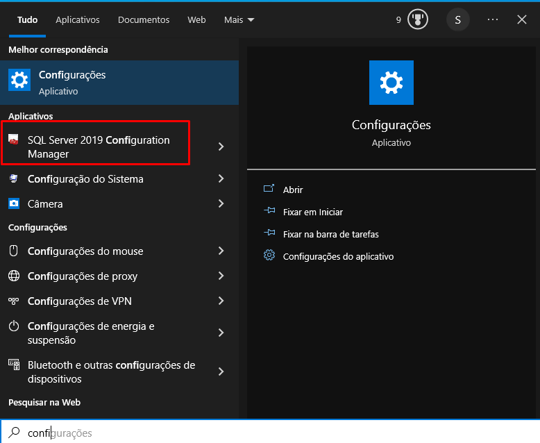 Abir a configuração do SQL_SERVER: