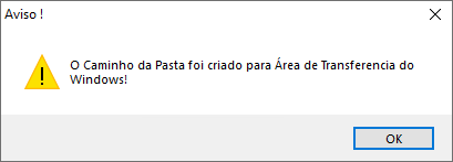 Ao utilizar a função automaticamente será copiado para área de transferencia do Windows o caminho da pasta do cliente.